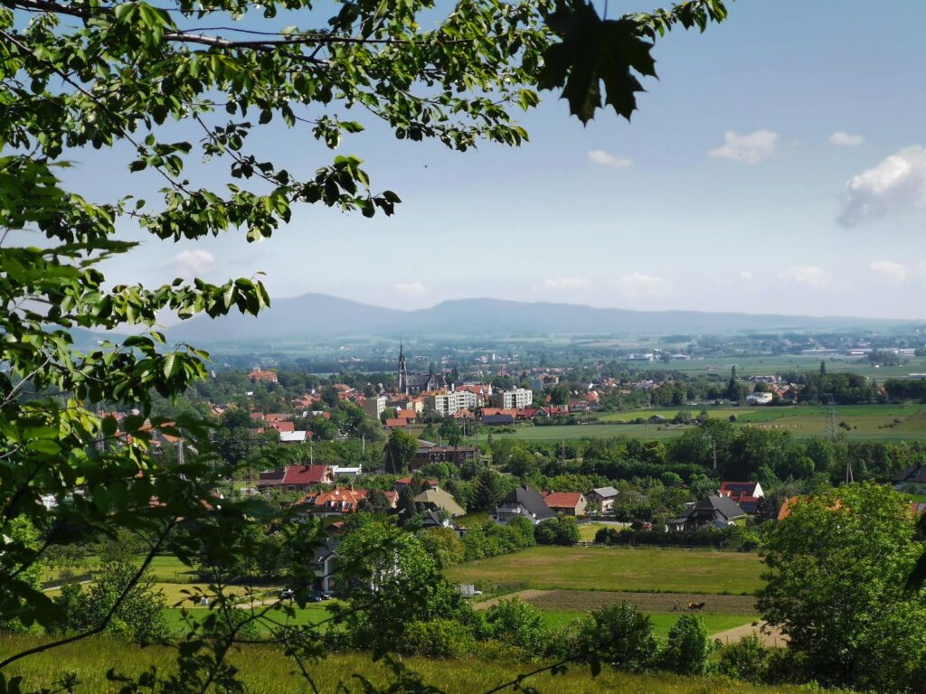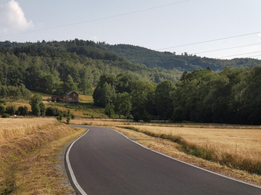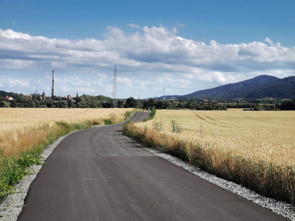 To część MTB. Poprowadzona głównie drogami gruntowymi. Początkowo polami (mijamy Jezioro Bielawskie – warto skręcić na wyspę na środku) od rogatek Bielawy lasami porastającymi zbocza. Przed Pieszycami (robimy mini pętlę) wyjeżdżamy z lasu – nagrodą jest spojrzenie z góry na miasto. Później jedziemy dalej gruntowymi opłotkami do Rościszowa.