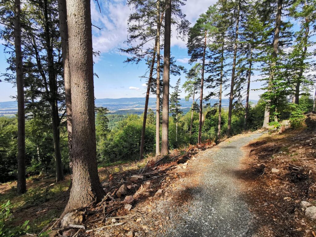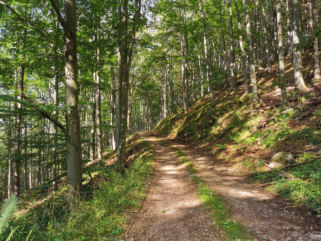 Objedziemy teraz Górę Suchań. Początek podobny do odcinka poprzedniego ale wspinaczka jest zdecydowanie dłuższa a zjazdów mniej. Po wyjechaniu z linii lasu jest kawałek zjazdu po łąkach.