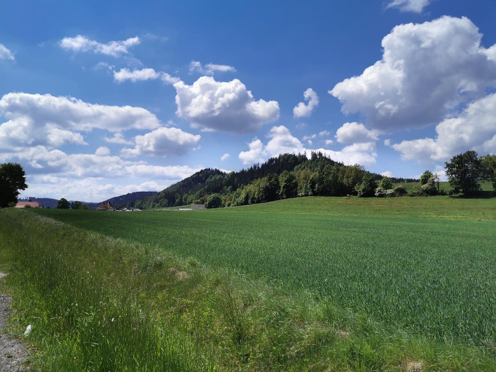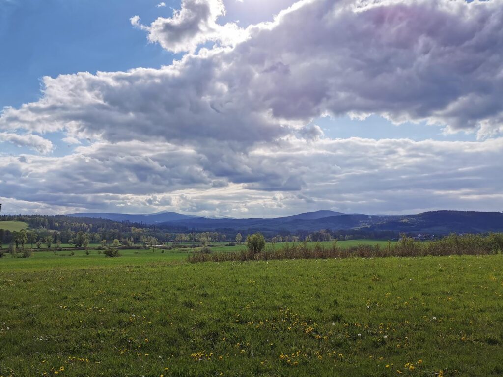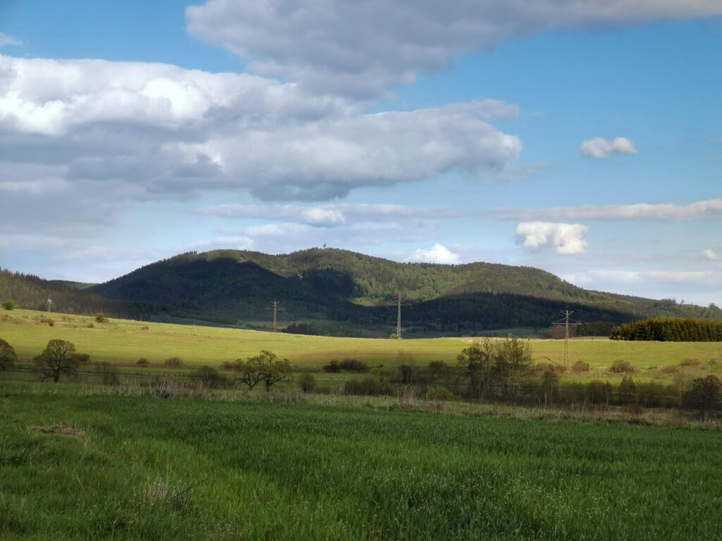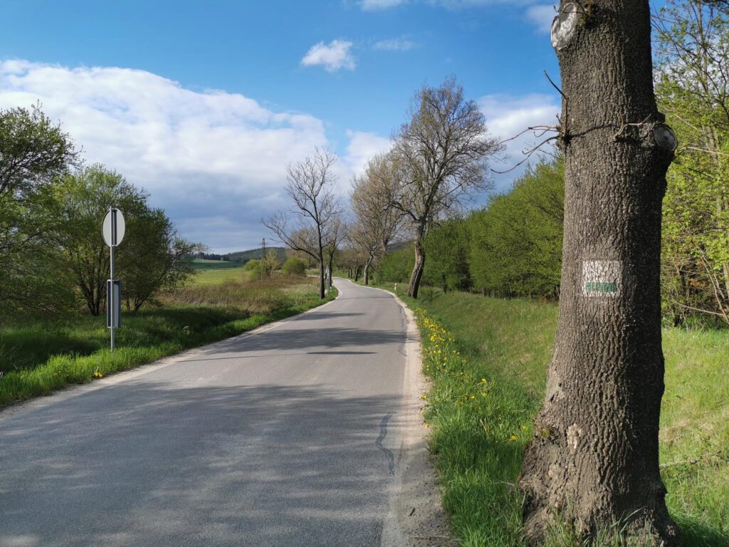 Najefektowniejszy odcinek trasy. Dłuższy, lekki, podjazd z przepięknymi widokami na Trójgarb, Rudawy Janowickie i Karkonosze.