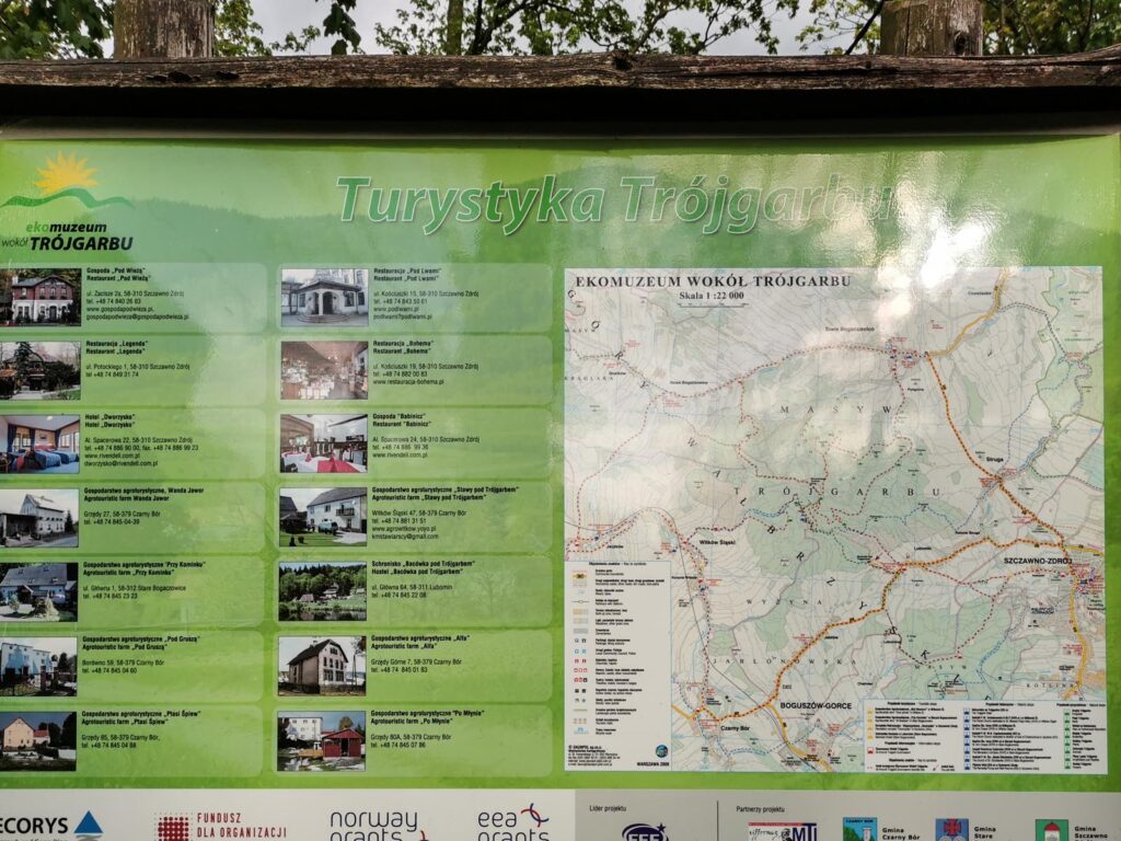 Uwaga. Po drodze mijamy Trójgarb i można naszą wycieczkę wzbogacić o ten cenny łup (na górę 7 km, 420 m vertical, do 17%).