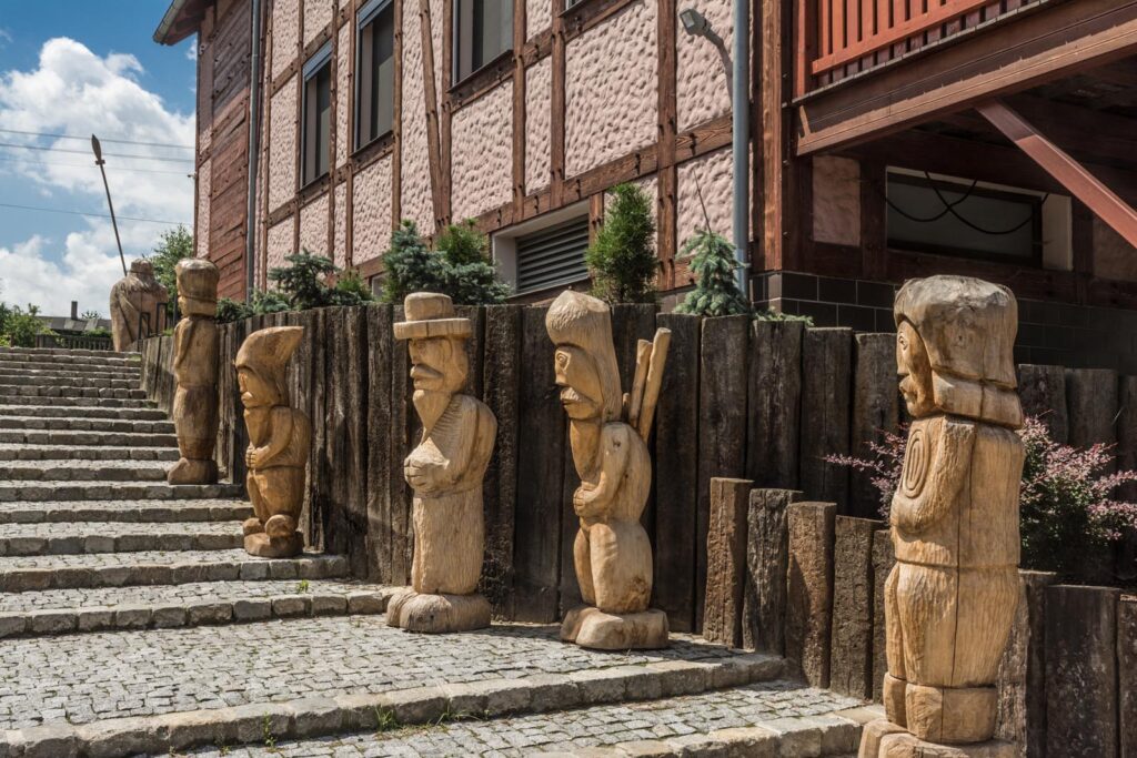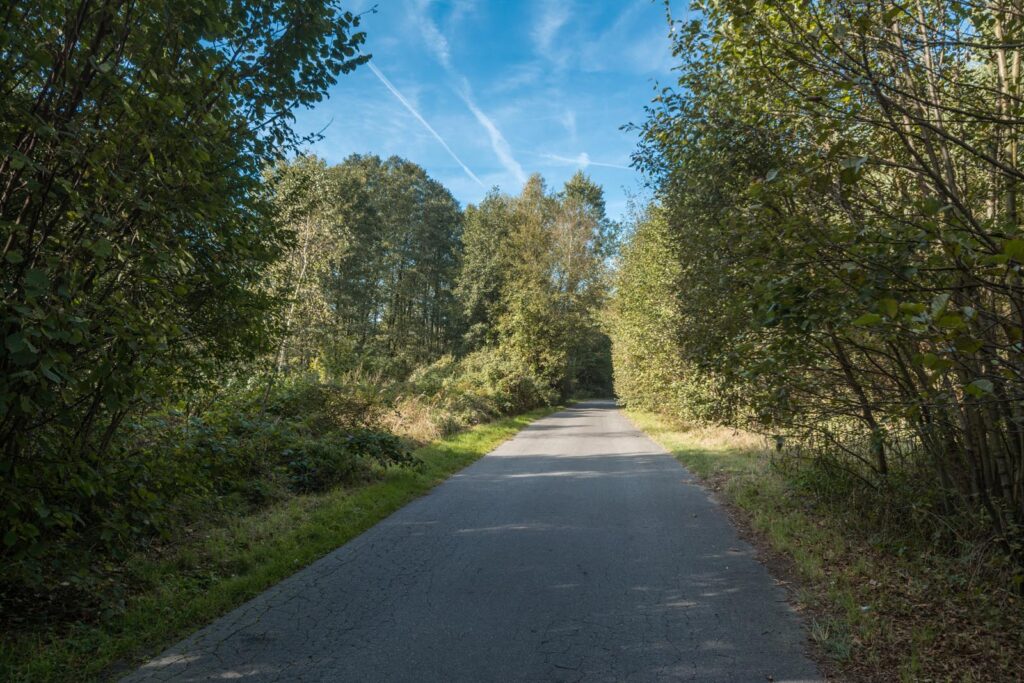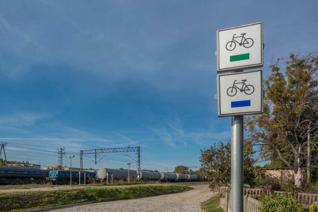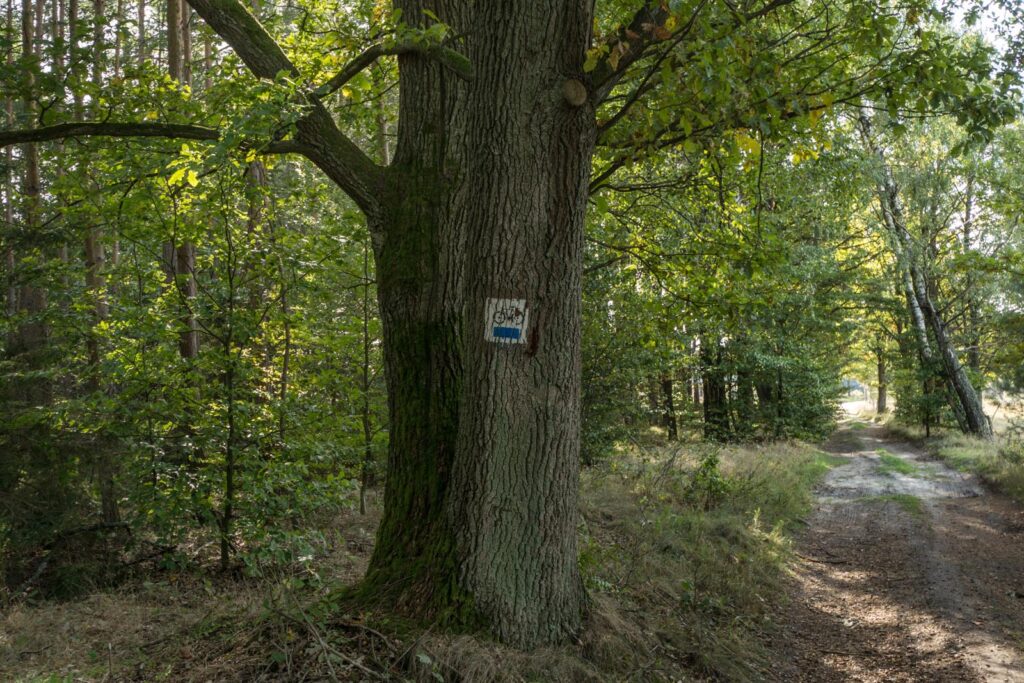 Dość dziwny, liniowy szlak; zaczyna się w środku pola, kończy/nie kończy przy kościele w małej miejscowości Strupina (znaków tam nie ma i ani kawałka informacji). I jeszcze występuje w dwóch różnych kolorach (niebieskim i czarnym). Podawana jest różna długość i przebieg. To po stronie dziwactw a po stronie plusów to, że poprowadzono go po wszystkich znaczących wzniesieniach Wzgórz Trzebnickich (stąd „Korona Kocich Gór”). I to jest najlepsza rekomendacja. Jeśli kochasz jazdę po pagórkach i jesteś kolekcjonerem niezwykłych klimatów to wyzwanie dla Ciebie. Musisz to zaliczyć! Po prostu. Szczególnie, że te Wzgórza to nawyższe wzniesienia w Polsce od Sudetów aż do Wieżycy na Pomorzu. Logistyka tej trasy ulega wyraźnemu uproszczeniu gdy zauważymy, że ostatni znak narysowano na granicy województwa dolnośląskiego, przed kolejnym całkiem konkretnym wzgórzem Wieża (249 m n.p.m.). Logicznie jest więc przyjąć, że trasa zaczyna się na dworcu w Bukowinie Sycowskiej a kończy na stacji w Skokowej. W oba te miejsca z Wrocławia łatwo dojedzie się pociągiem. Ponieważ szlak jest solidnie długi to można go podzielić na dwie części w oparciu o dworzec kolejowy w Trzebnicy (a lepiej Tarczowie Wielkim). Obydwa fragmenty dojazdowe zaznaczyłem przerywaną linią.