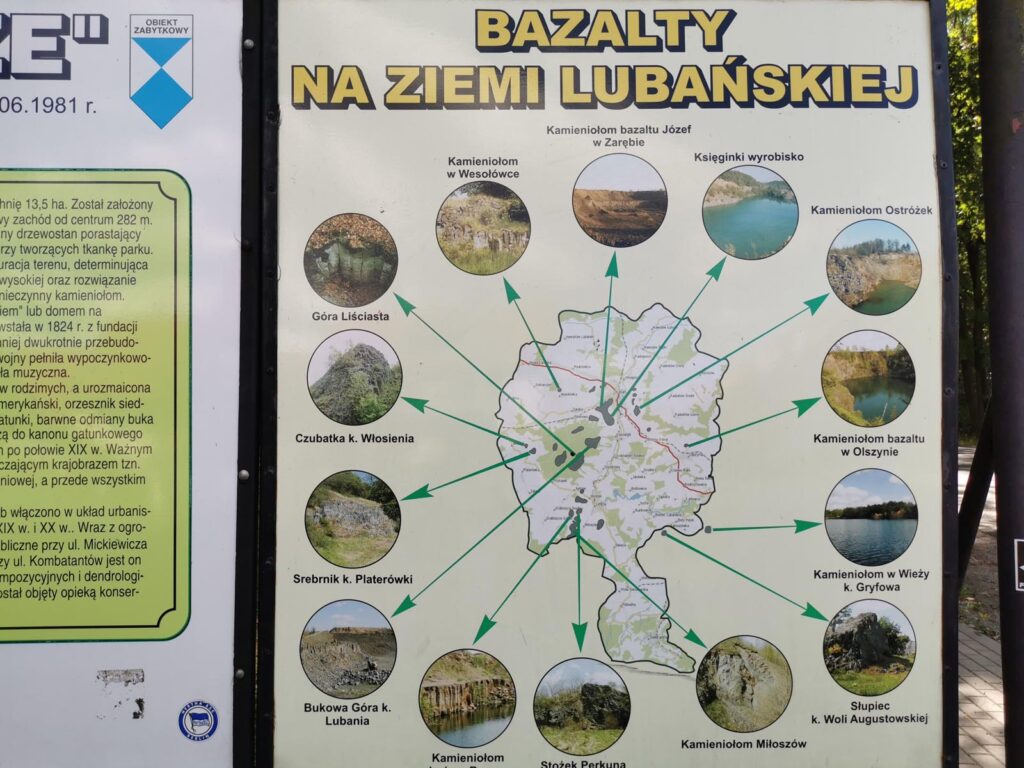 Doskonałej jakości surowiec budowlany był impulsem dla rozwoju przemysłu wydobywczego. Bez przesady można powiedzieć, że bezpośrednio przyczynił się do powstania Lubania. Bazaltowe złoża eksploatowano tam już w średniowieczu. Wraz z rozwojem techniki przybywało rozlicznych zakładów wydobywczych. Aż do dzisiejszej skali gdzie zakłady Eurovia produkują miliony ton kruszywa bazaltowego rocznie. Opisywana trasa pozwala przyjrzeć się różnym etapom przemysłu wydobywczego regionu. Od kamieniołomu – pomnika przyrody dosłownie w mieście, przez urokliwe jeziorka leśne, w które przekształciły się zalane łomiki. Droga prowadzi także obok gigantycznych, wyeksploatowanych już złóż kopalni Księginki 1. Można tam zajrzeć wprost z drogi. Większe eksploracje są też możliwe ale należy to wcześniej załatwić.