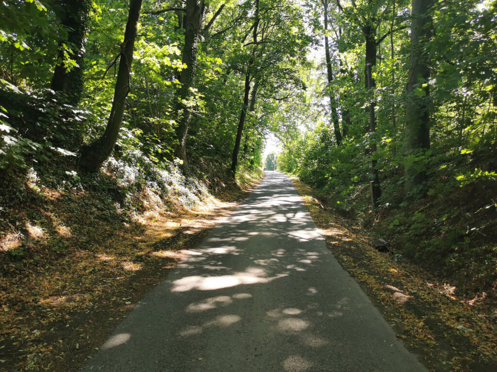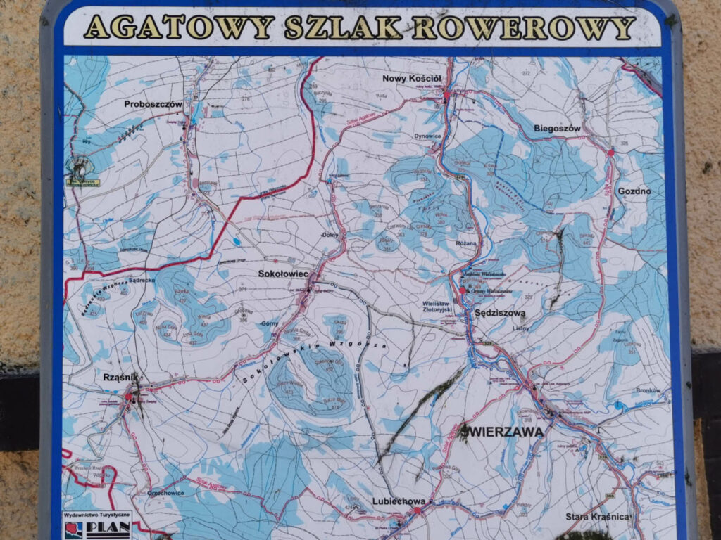 Kamieniołom na krańcach tej wioski jest dla poszukiwaczy minerałów chyba jednym z najbardziej znanych miejsc. Znajduje się tu różne odmiany chalcedonu w tym tytułowe agaty, ametysty, kalcyty. Z innych ciekawych minerałów: baryt i piryt. Kamieniołom znajdziecie 300 m od trasy. Kawałek dalej w wiosce na krótkim odcinku jedziemy wspólnie z Pętlą Walońską. Można korzystając z koloru niebieskiego znacznie przedłużyć wyprawę.