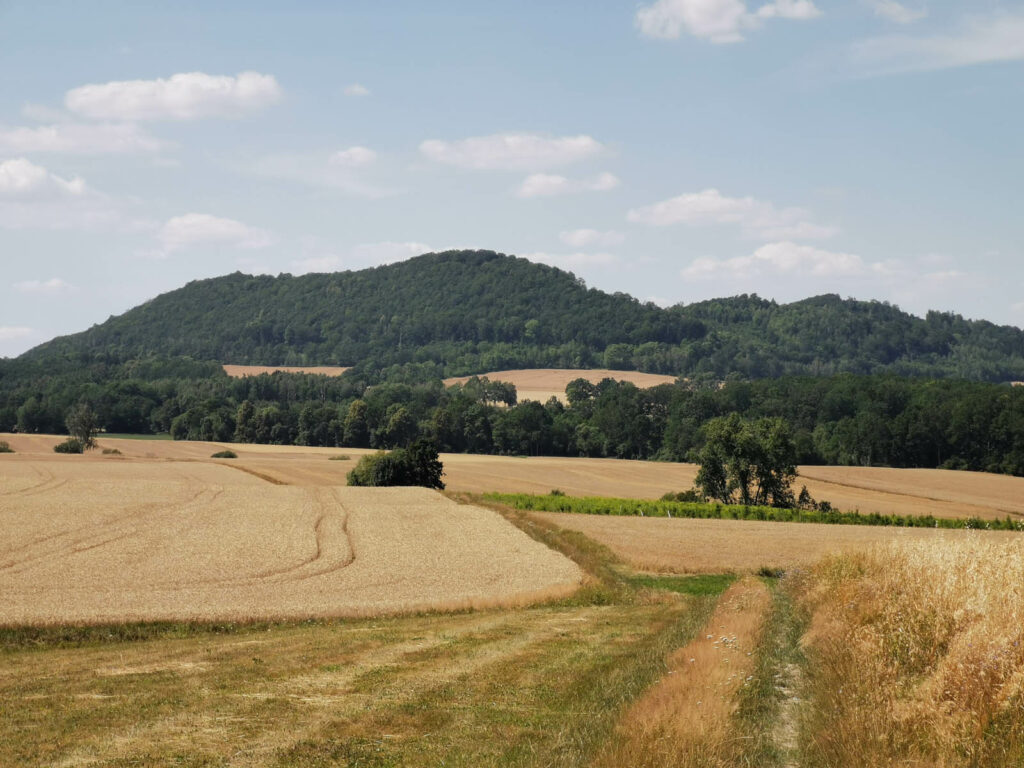Średniej długości pętla w pagórkowatym terenie. Do 32 km należy dodać 450 m przewyższeń. Poprowadzona zróżnicowanymi drogami: od spokojnych asfaltów (najwięcej), przez szutry leśne i polne drogi gruntowe, nie nastręczające trudności. Trasa oznaczona przyzwoicie ale nie aktualizowana. Za Szczechowicami czeka na niej niespodzianka w postaci rozpiętego pastucha pod napięciem (2019). Dokonaliśmy poprawki szlaku omijając ten kłopotliwy fragment. Poza tym trasa bardzo sympatyczna, spokojne miejscowości i ładne widoki to najkrótsza charakterystyka. Przewodnim motywem krajobrazowym jest Ostrzyca Proboszczowska (zwana polską górą Fudżi) doskonale widoczna przez mniej więcej 1/3 drogi.