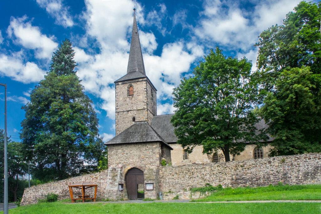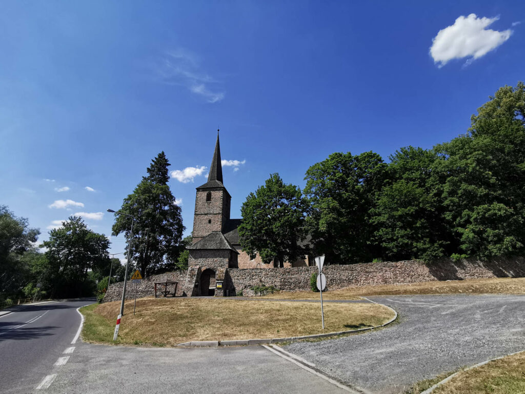 Chyba najlepszy „naturalny” punkt startowy. W miasteczku trzeba obowiązkowo odwiedzić Kościół św. Jana Chrzciciela i św. Katarzyny Aleksandryjskiej. To doskonale zachowana budowla romańska, można powiedzeć ewenement. W środku zobaczymy XIII wieczne bardzo nietypowe malowidła.