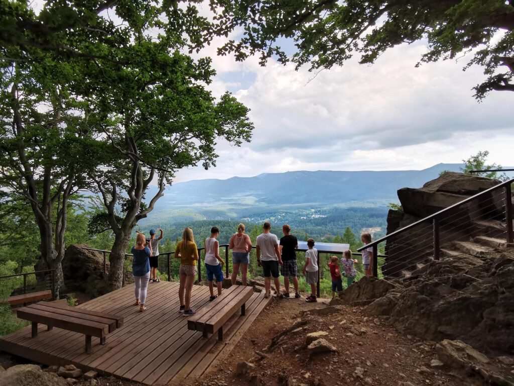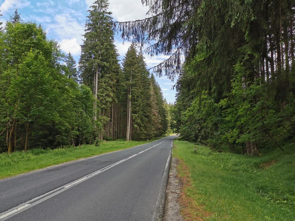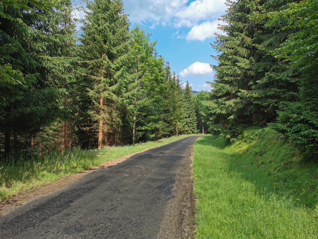 Nie jestem fanem tego odcinka bo ruch samochodowy jest dość spory, ale to najprostszy sposób na zrobienie wysokości i można to potraktować jako cenę za odcinek 2. Podjazd ma około 6 km i 6-7%. Po drodze możemy zajrzeć na grób Liczyrzepy, póżniej na Skałę Teściowej i punkt widokowy przy Zakręcie Śmierci. Po tym zjazd do miasta.