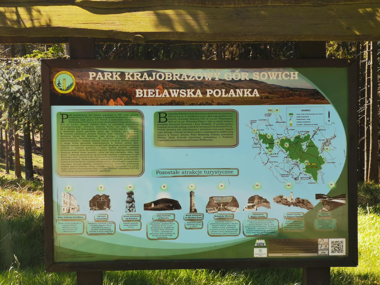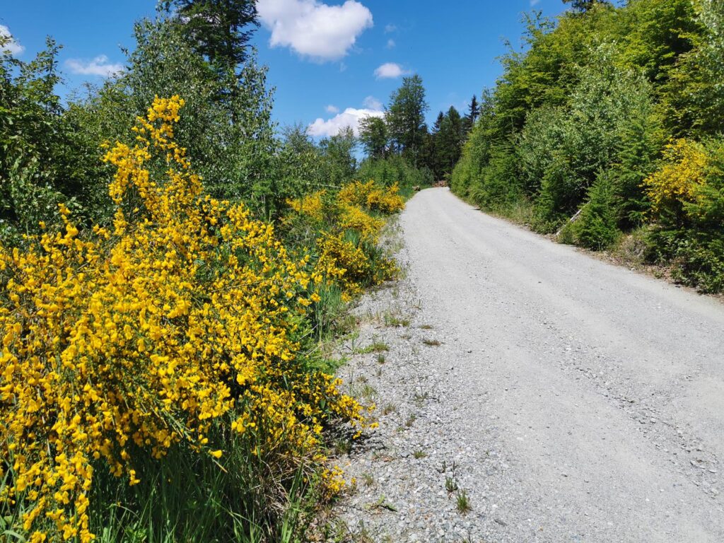 1. Przełęcz Woliborska (wygodny parking na kilkanaście aut) – Polana Bielawska. Długa, gładka, bardzo szeroka, szutrowa autostrada wcięta w zbocza gór. Ładne widoki, umiarkowane nachylenie.