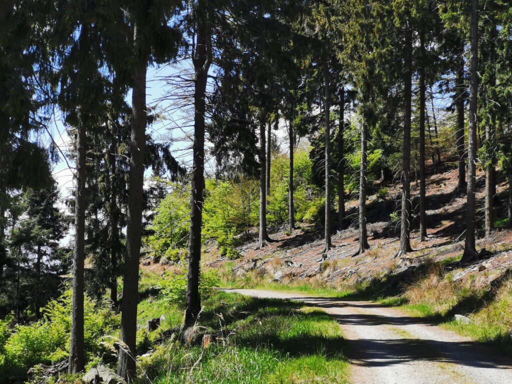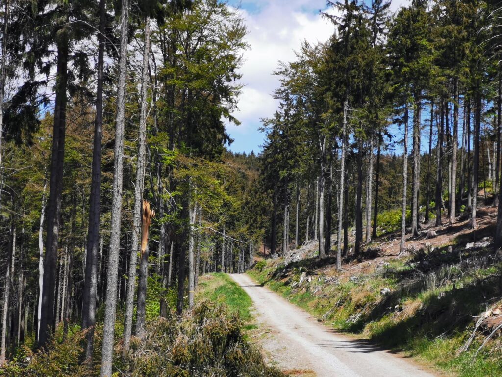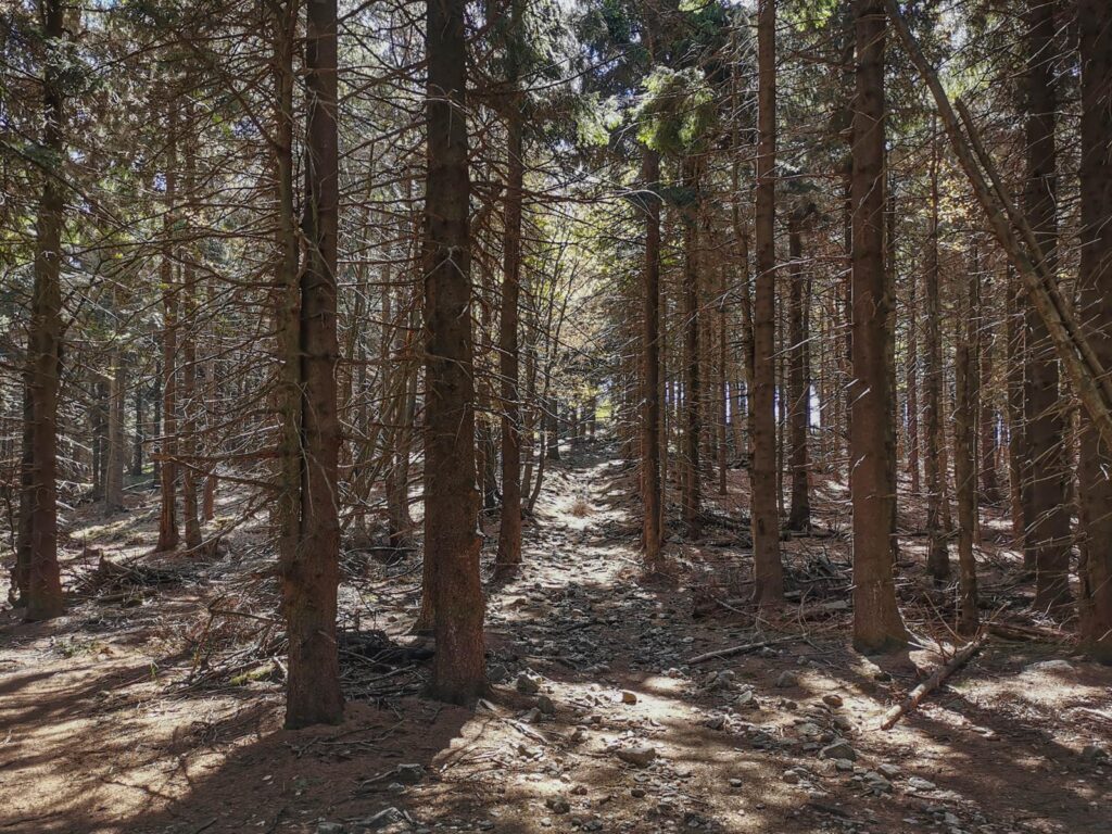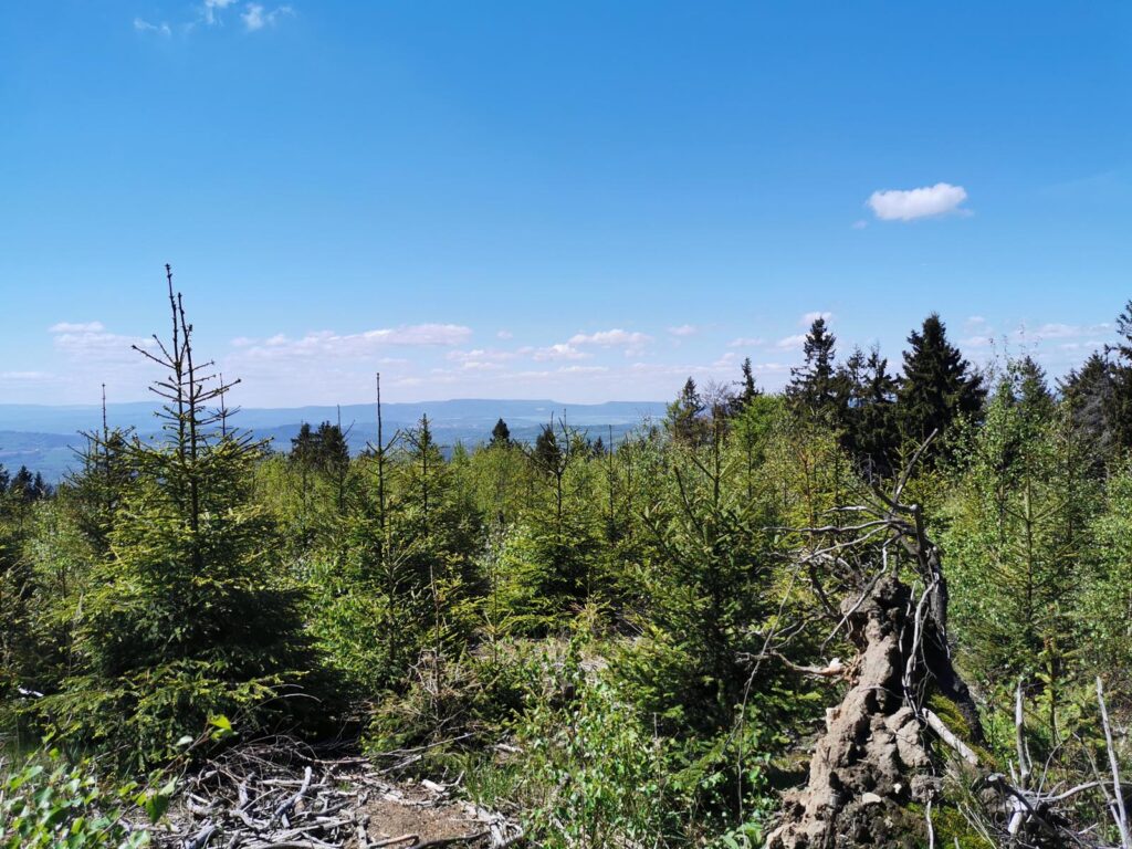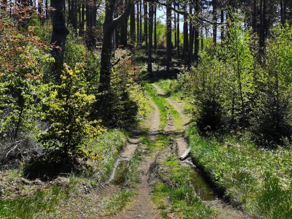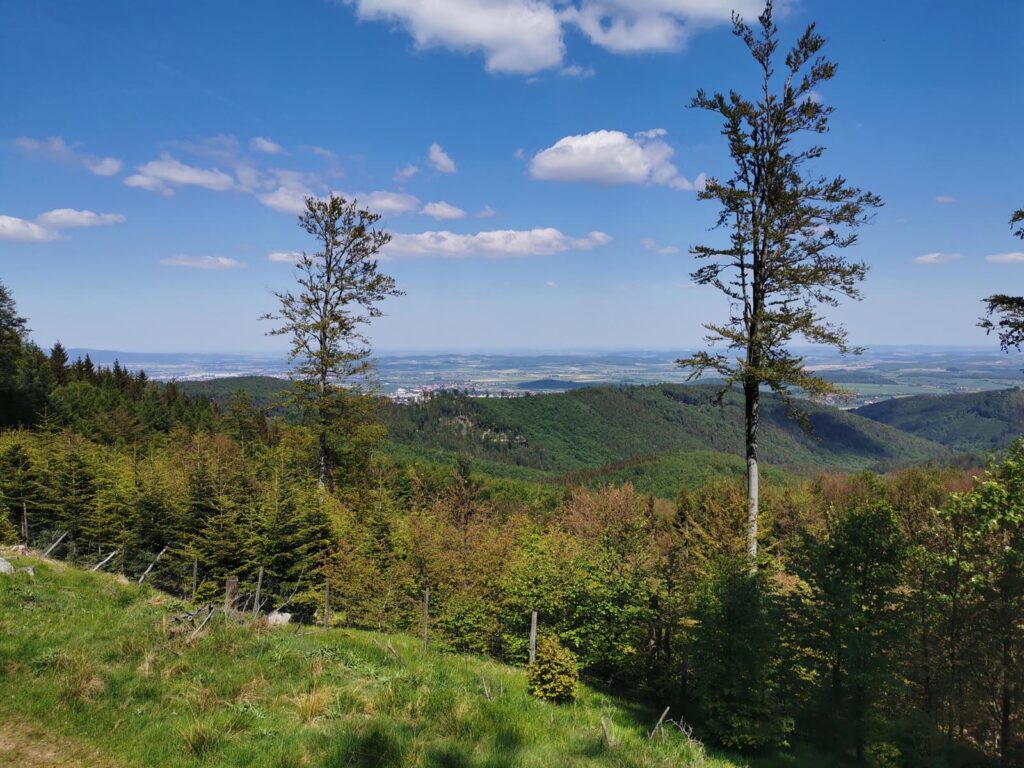 Łatwa, bardzo widokowa trasa, biegnąca głównie drogami mocno wciętymi w zbocza. Do tego jeden bardzo wymagający fragment ścieżką przez szczyt Popielaka. Opis zacznę od punktu dostępowego na przełęczy Woliborskiej i zgodnie z ruchem zegara.