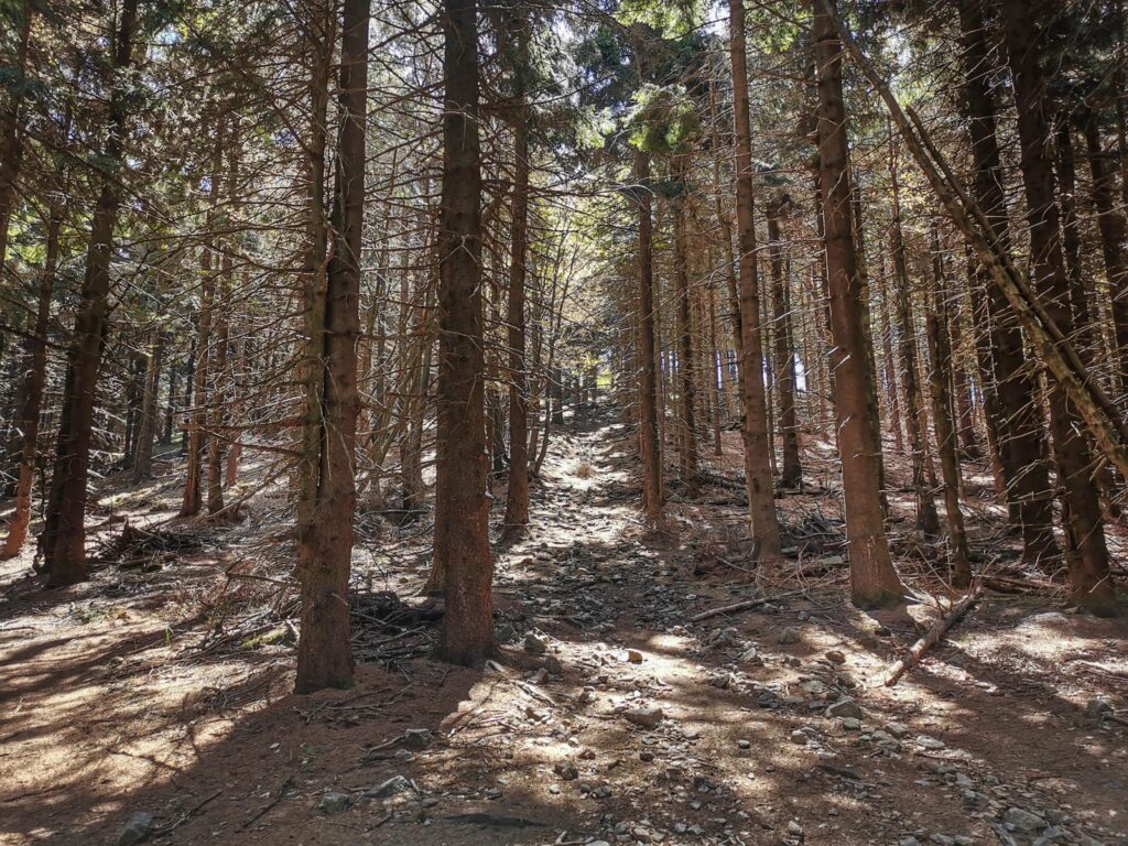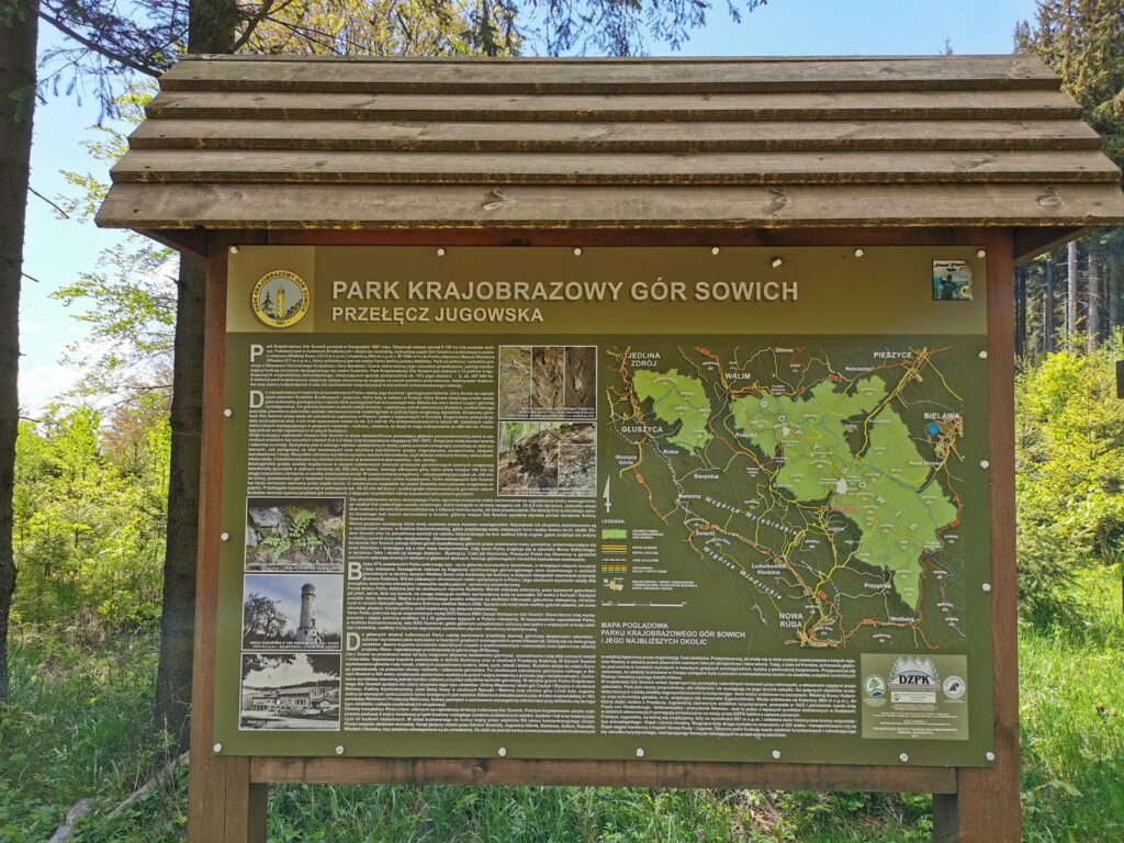 4. Polana Bielawska – Przełęcz Woliborska. Rozpoczyna go bardzo wymagający odcinek pieszą ścieżką po obu stronach Popielaka. Stromo i kamieniście. Dalej jest zdecydowanie spokojniej gdyż poruszamy się po kameralnych drogach i poza ewentualnym błotem jest spokojnie.