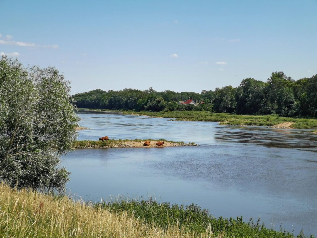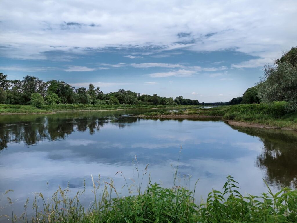 Pętla 53 km, której nie da się podzielić w oparciu o dojazd koleją. Można ją ewentualnie skrócić o 4 km startując ze stacji w Ścinawie a kończąc w Małowicach Wołowskich. W okolicach obydwu stacji poruszamy się po drogach asfaltowych, reszta to głównie drogi gruntowe, czasem (po stronie zachodniej) trochę piaszczyste. Trasa została przez nas zmodyfikowana, omijając przepiękne łąki na północ od Ścinawy, gdzie nie ma już tej drogi polnej po której wyznaczono Szlak Odry. Nie mniej jednak narysowałem też alternatywną, w miarę przejezdną, ścieżkę, dla tych wszystkich co nie lubią aby było zbyt łatwo (a za to kochają piękne okoliczności). Północna połówka trasy po obydwu stronach jest po prostu wspaniała, z krótkim przerywnikiem w Chobieni (DOT ). Obowiązkowo trzeba zaliczyć zjazdy do wody na byłej przeprawie promowej po obu stronach rzeki. No i na zakończenie – okolice Bieliszowa – prawdziwa wisienka na torcie Szlaku Odry. Zdjęcia ustawiłem od Ścinawy zgodnie z kierunkiem ruchu wskazówek zegara.