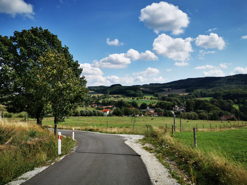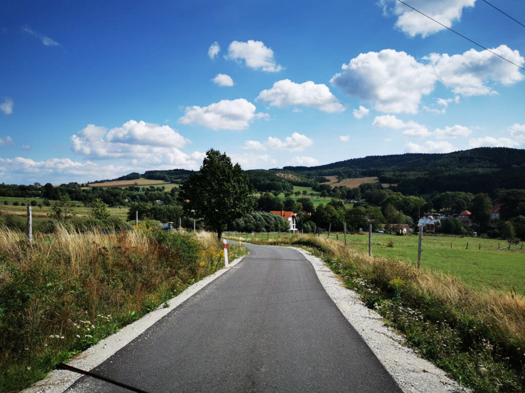 Rewelacyjna trasa (obowiązkowa!), biegnąca po Górach Kaczawskich, z licznymi atrakcjami, dająca wielką przyjemność z jazdy. Przy około 55 km długości trasa ma około 1200 m sumy przewyższeń, do tego trochę trudniejszych podjazdów (z maksymalnymi nachyleniami blisko 15%), podchodzi więc pod mtb. Mamy tu drogi gruntowe, polne i leśne, sporo spokojnych asfaltów. Trasa wyznaczona w 2004 roku (przy współudziale funduszy PHARE). Obecnie jest szczątkowo oznakowana nielicznymi i często połamanymi tabliczkami.