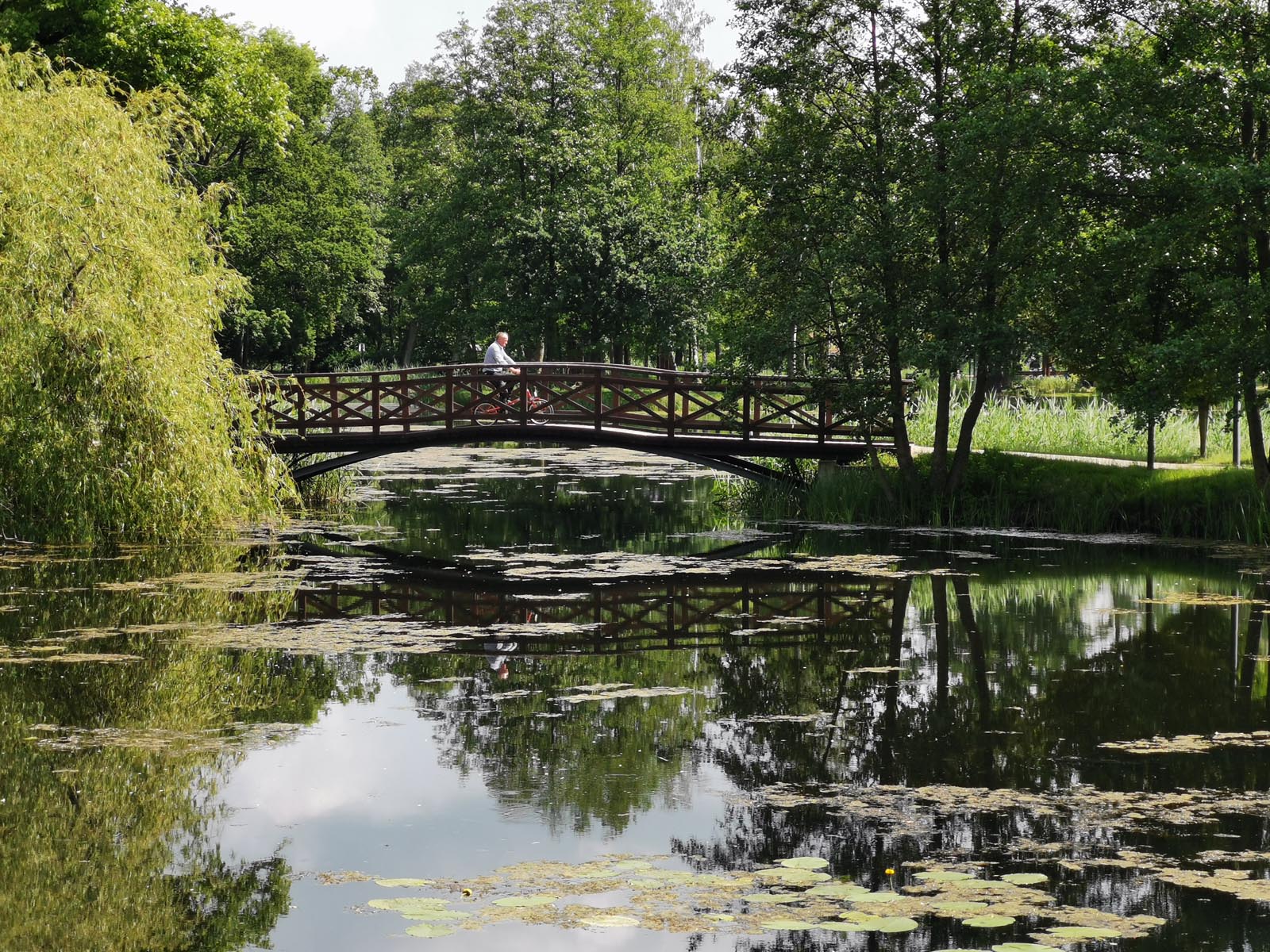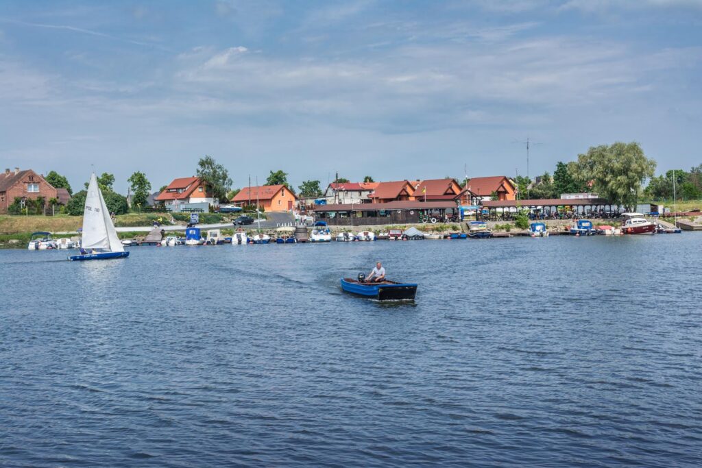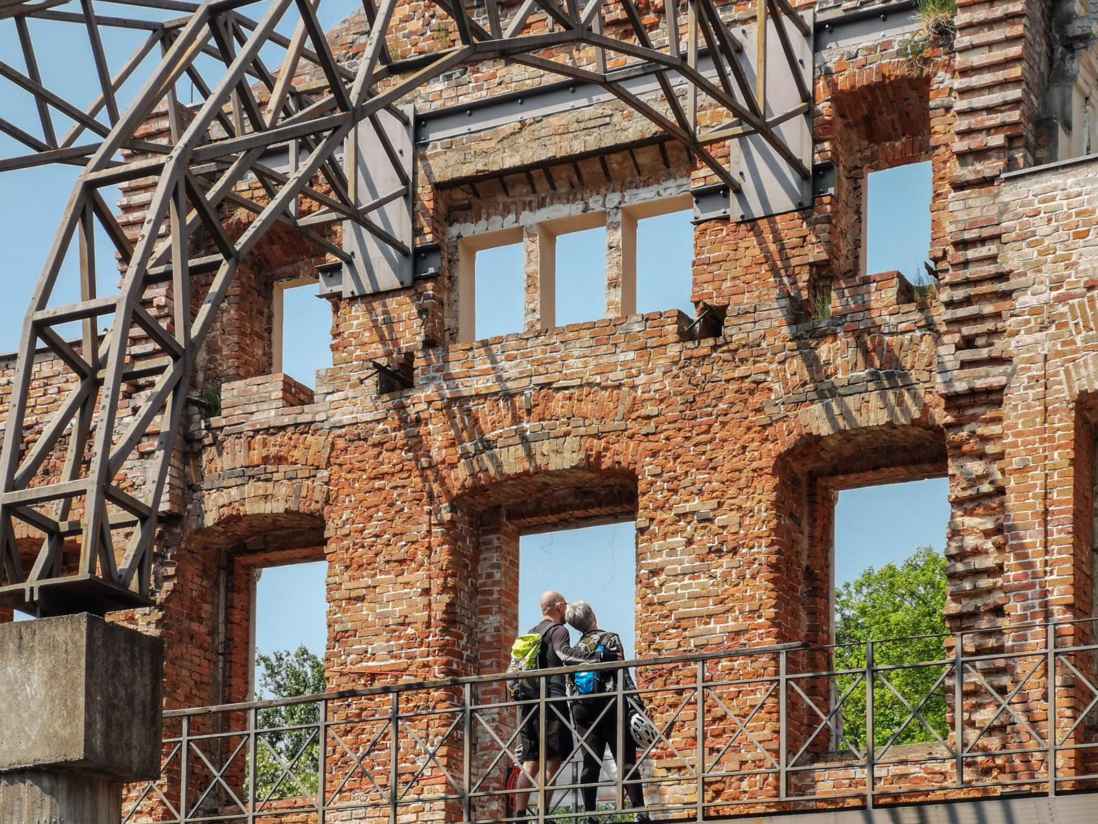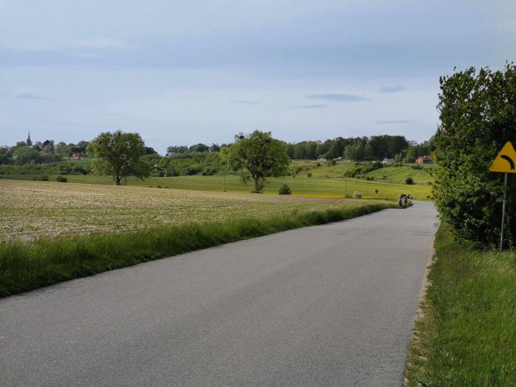 Chyba łatwiejsza część pętli – 86 km trasy (plus 3 km dojazd ze stacji). Pierwsze miejsce warte dłuższych eksploracji to zespół parkowo-pałacowy w Żmigrodzie. Pięknie utrzymany park ze stawem z wysepką (do wynajęcia), do tego mostki, altany oraz tereny i pomosty rekreacyjne warte są okolicznościowej rundki. Jeszcze ciekawsza jest, trwale zabezpieczona, pałacowa ruina, prosząca się wprost o sesję foto. Obok mamy zabytkową basztę a w jej wnętrzach Centrum Informacji Turystycznej, pokoje hotelowe i taras widokowy. Kawałek za Żmigrodem przejeżdżamy przez Tor Doświadczalny Instytutu Kolejnictwa w Węglewie, jedno z ośmiu takich miejsc na świecie. Teraz po dłuższym spokojnym przekładańcu polno-leśnym, poprowadzonym spokojnymi asfaltami, docieramy do Urazu. Tamtejszy port to punkt obowiązkowy. Polecimy zupę rybną i wędzone ryby, oraz inne atrakcje miejsca. Wracamy na asfalty, przejeżdżając obok stacji w Szewcach, aż do Strzeszowa, gdzie wjeżdżamy na wyjątkowo długi fragment idealnie prostej, gruntowej, drogi. Na zakończenie połówki pętli zaliczamy Las Malin lądując na dworcu kolejowym.