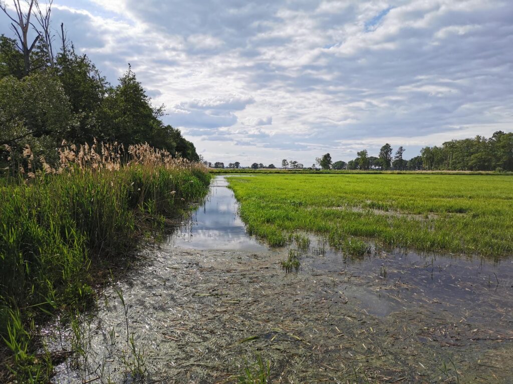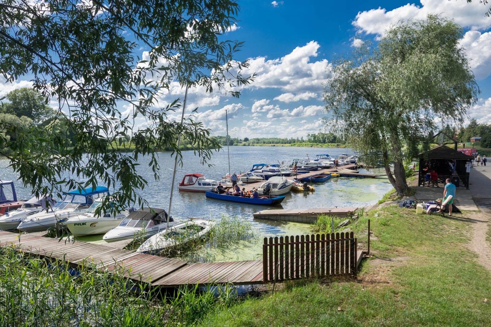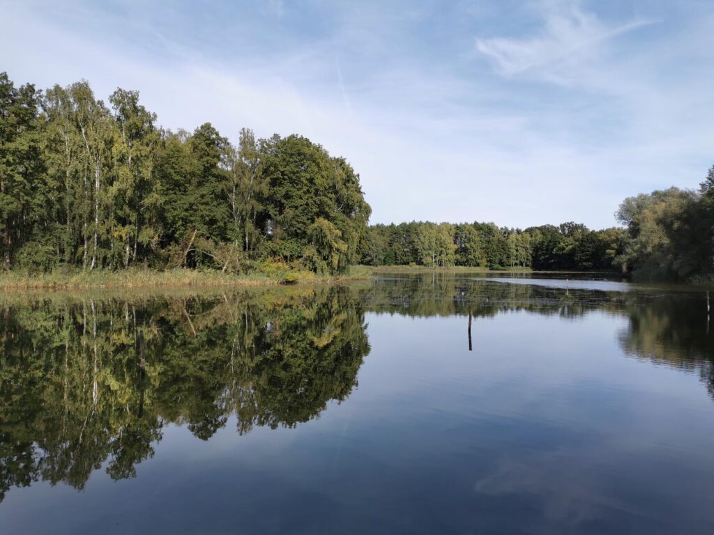 Dość szybko trafiamy na długi piaszczysty fragment wspomniany na początku. Później jest zdecydowanie łatwiej, jakkolwiek czas będzie poganiał, a atrakcji moc. Piękne widoki zaczynają się w Grabówce, następnie mamy słynną Restauracją 8 Ryb, stawy Trześniówki, przyjemną leśną drogę (gruntową ale twardą), staw Rudy i kompleks Jamnik. I kawałek dalej kameralny Staw Sieczkowski, z wyboistym dojazdem polnym. Tam zostawiamy w tyle Stawy Milickie, pora mocniej depnąć i nadrobić kilometry. Będziemy jechali na południe, głównie, drogami utwardzonymi o różnym standardzie od gładkich asfaltów przez mocno zużyte oraz odcinki po płytach betonowych. Za Skarszynem trafią się jeszcze kawałki gruntowe. Finiszujemy na stacji kolejowej.