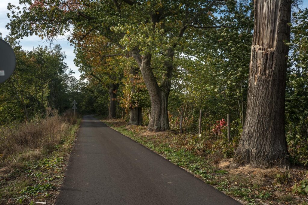 Bardzo ładna, blisko 50 km (400 m vertical) pętla. Mnie na mapie przypomina… sympatycznego kreskówkowego sznaucera. Zaczynamy „na karku” w Twardogórze. Trasa prowadzi przez liczne stawy nanizane po trasie jak niebieskie koraliki. Te wodne oczka wyznaczają leniwy rytm jazdy. Bo przecież przy każdym warto się zatrzymać! Mamy na zmianę spokojne asfalty i drogi gruntowe (leśne i polne). Tych ostatnich jest chyba więcej. Okolice Goli są piaszczyste, zdecydowanie na szersze opony. Na trasie spotkamy dwa niezwykłe obiekty i to jest kolejny, mocny powód dla którego trzeba tu przyjechać. Pierwszy w kolejności to pałac w Goli (więcej zdjęć i tekst w DOT65). Drugi znajdziecie poniżej.