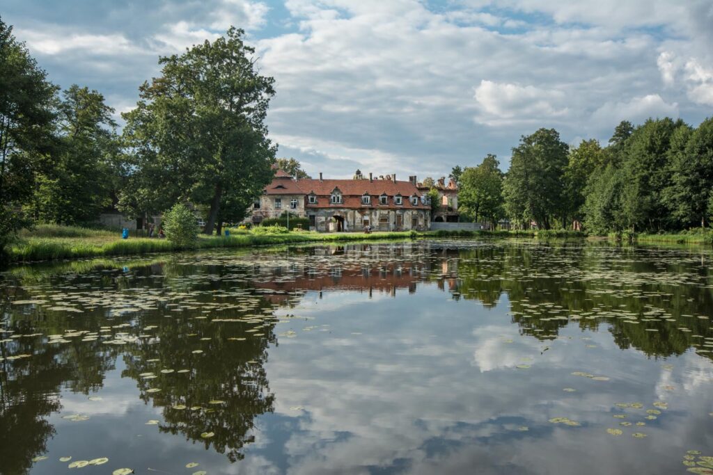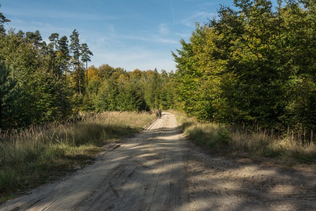 Pętla o długości 23 km (210 m vertical) poprowadzona w większości lasami, na wschód od Twardogóry. Proponuję zacząć właśnie od tego kierunku. Drogi są tutaj piaszczyste, zdecydowanie na szersze opony. Po drodze możemy zatrzymać się przy leśniczówce w Goli i zajrzeć do pobliskiego rezerwatu jodłowego (po drodze głazy narzutowe). Dalej czeka nas zespół pałacowy w Goszczy. Oprócz zabytkowych budowli, zbudowanych na bardzo ciekawych założeniach, warto objechać towarzyszący mu park. W tym ścieżki wzdłuż stawu, z przednim widokiem na pałac. Wracając „zalicza” się jeszcze Mauzoleum Reichenbachów i aleję z starymi dębami w okolicach Wesółki.