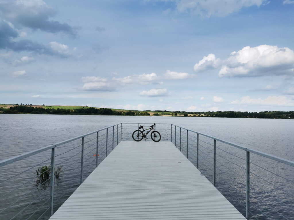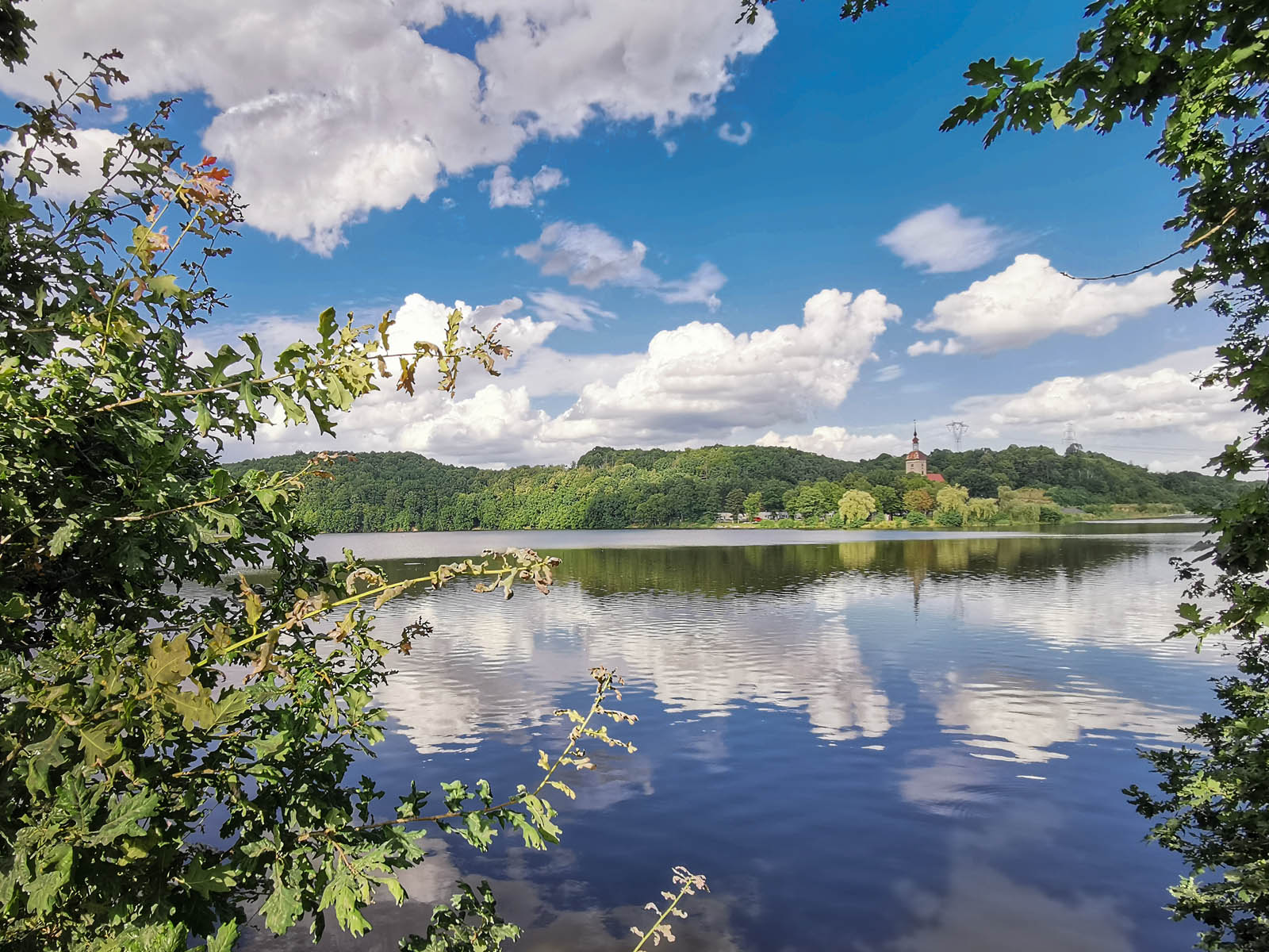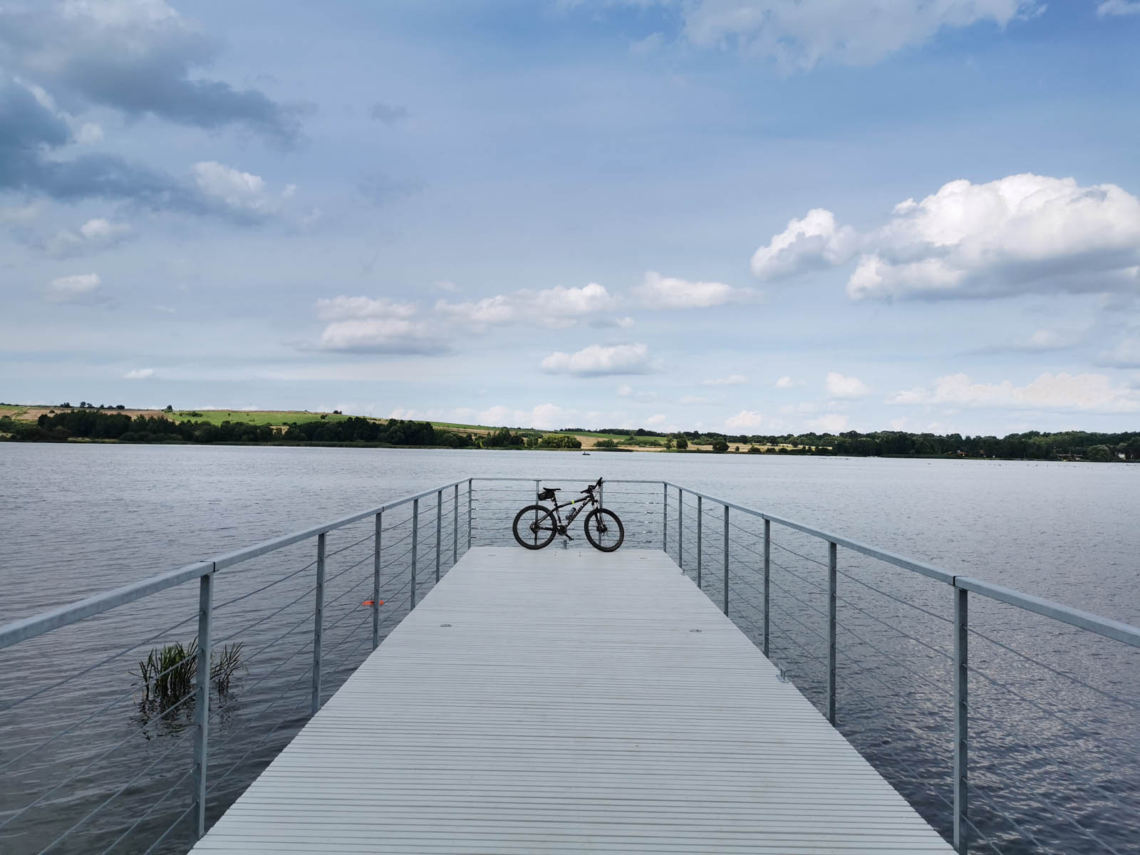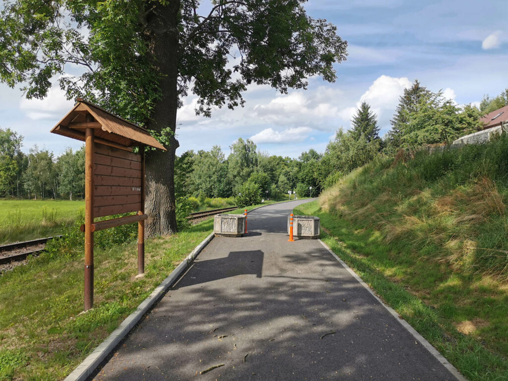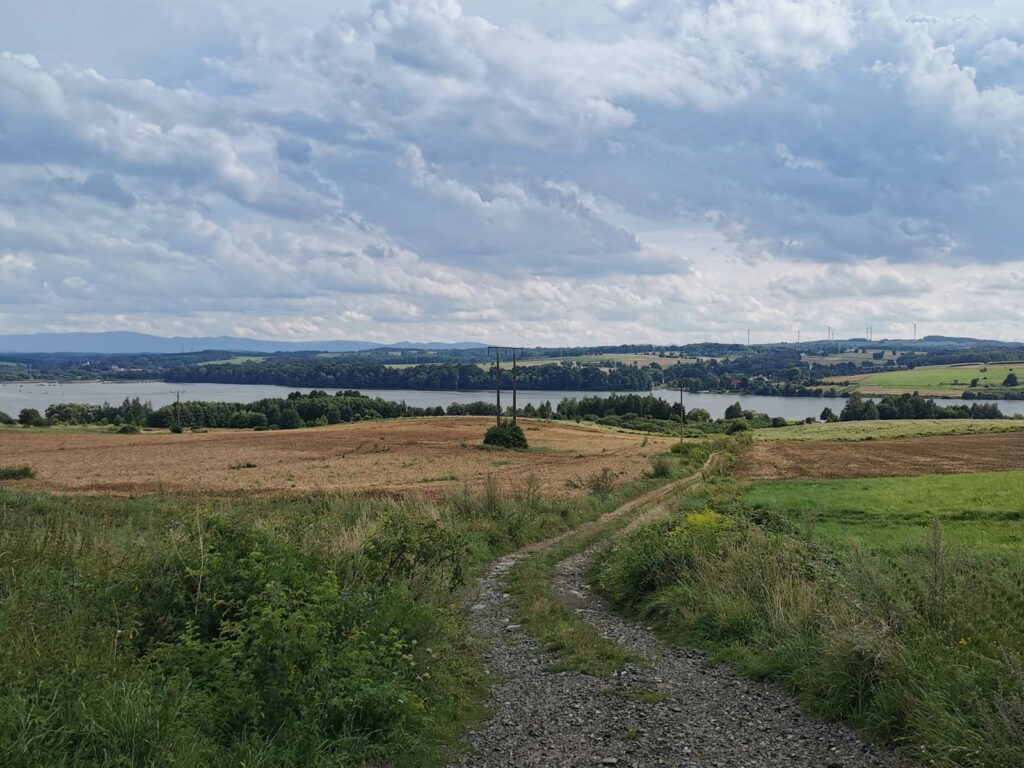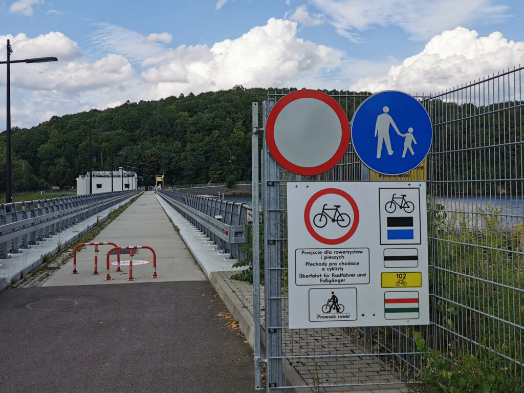 Chyba najlepiej zacząć przy koronie zapory gdzie można znaleźć dość wygodny parking. Można też dotrzeć do tego miejsca wykorzystując DDR zaczynający się przy drodze 352. Pierwszy jest podjazd zboczami Kłapacza, kawałek dalej mijamy Słowiańskie Wzgórze z pięknym widokiem na jezioro i Góry Izerskie. Teraz dynamiczny zjazd do Wilka i przez dwa fragmenty DDR docieramy do granicy. Nawet nie ma tam żadnego znaku. Koniec drogi rowerowej oznacza Czechy.