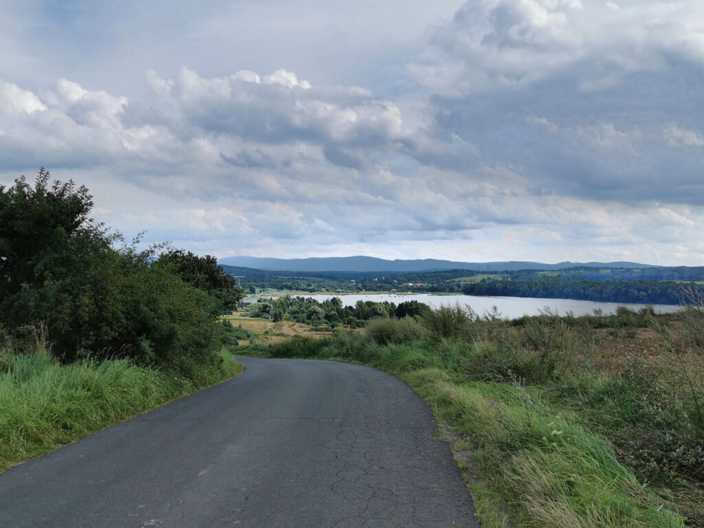 Na początku mamy krótki przejazd ziemią naszych sąsiadów. Granica tym razem oznaczona. Po tym wspinaczka do Spytkowa i obowiązkowy zjazd (i powrotny podjazd) nad jezioro. Kawałek dalej kolejne przyjemne pejzaże. Docieramy do zapory