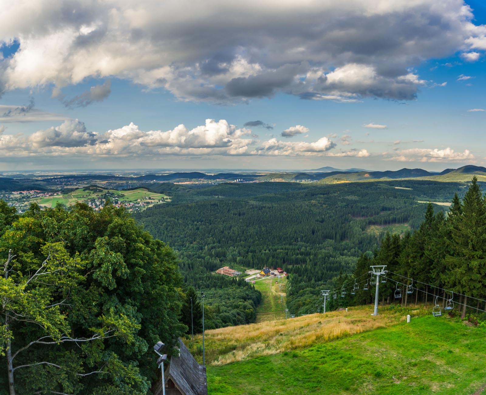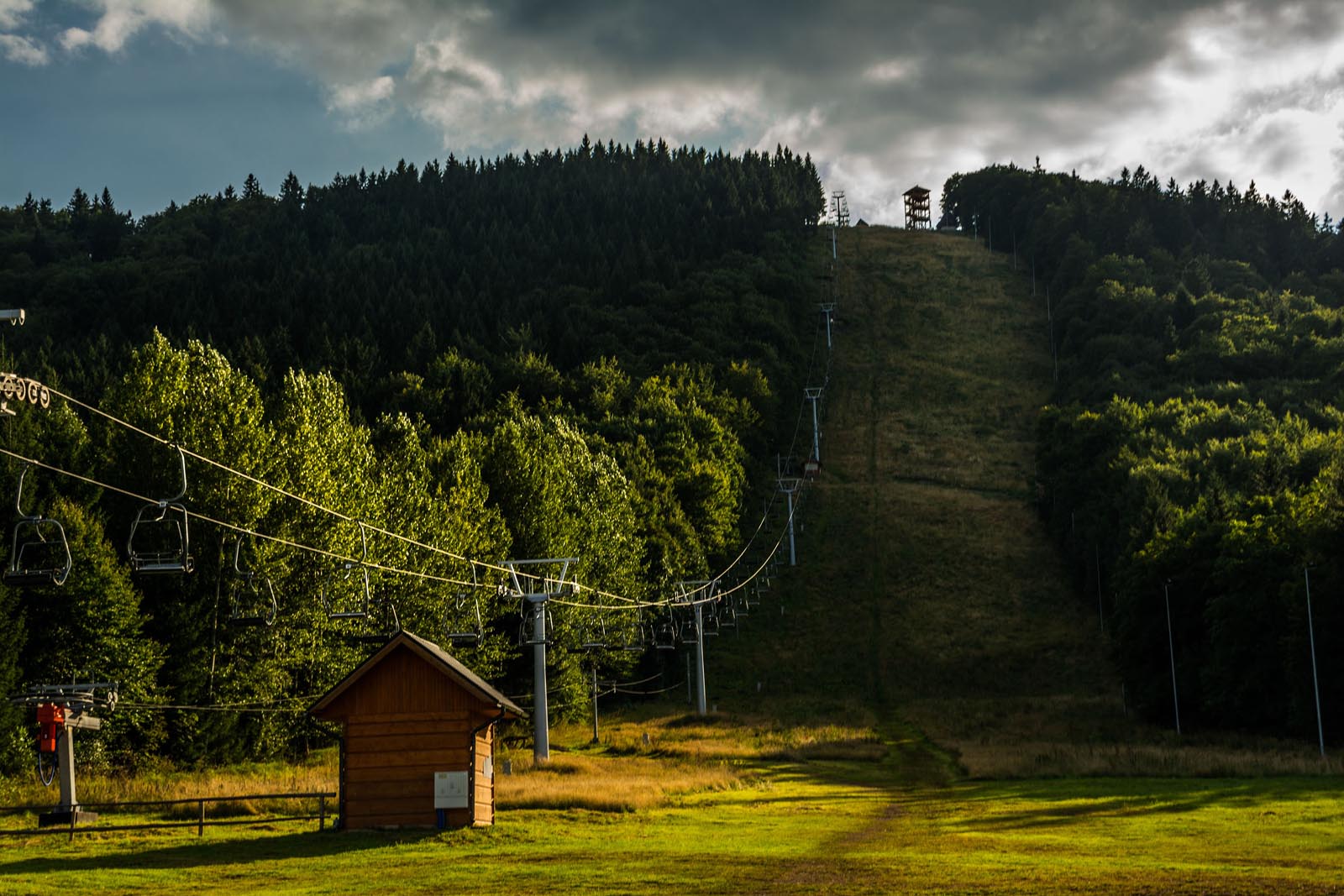 Mamy tutaj dużo jazdy w lesie po drogach gruntowych utwardzonych, przedzielonych dłuższym fragmentem po niezbyt ruchliwym asfalcie. Nachylenia poniżej 10%. Za Nowym Lesieńcem mijamy nieczynny kamieniołom. Do samego wyciągu na Dzikowiec trasa nie prowadzi, zdecydowanie warto tam skręcić. Można linową podwózką wjechać na wieżę widokową. Ewentualne zjazdy to DH więc niekoniecznie trzeba brać rower.