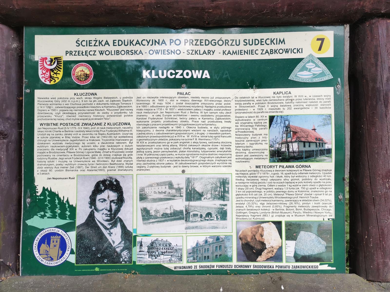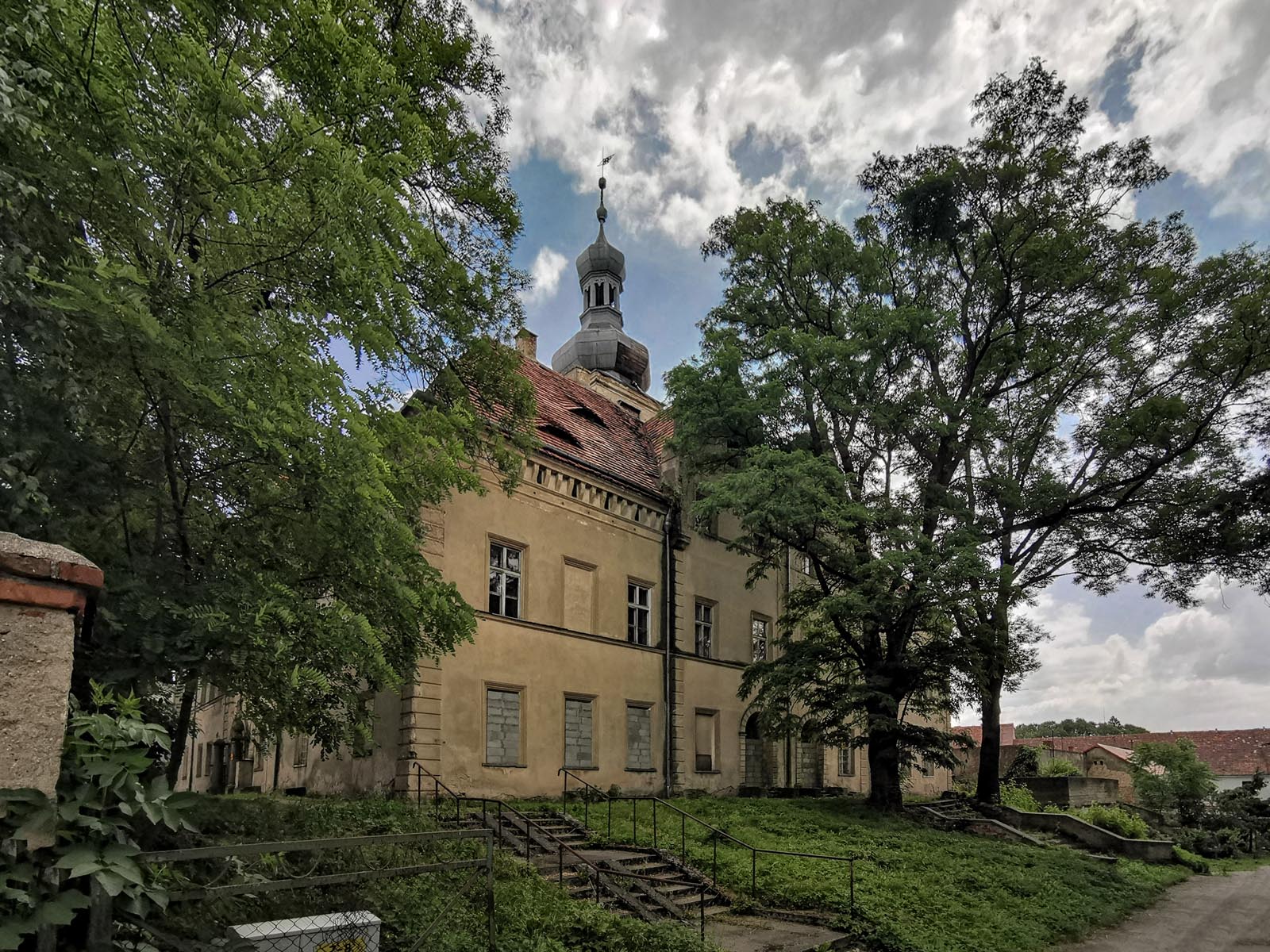 Obok wspomnianego kościoła mijamy po drodze pałac z XVII w. Skręcamy na pola a następnie wygodnymi asfaltami docieramy do Kluczowej do imponującego XVI w. pałacu, niestety w kiepskim stanie.