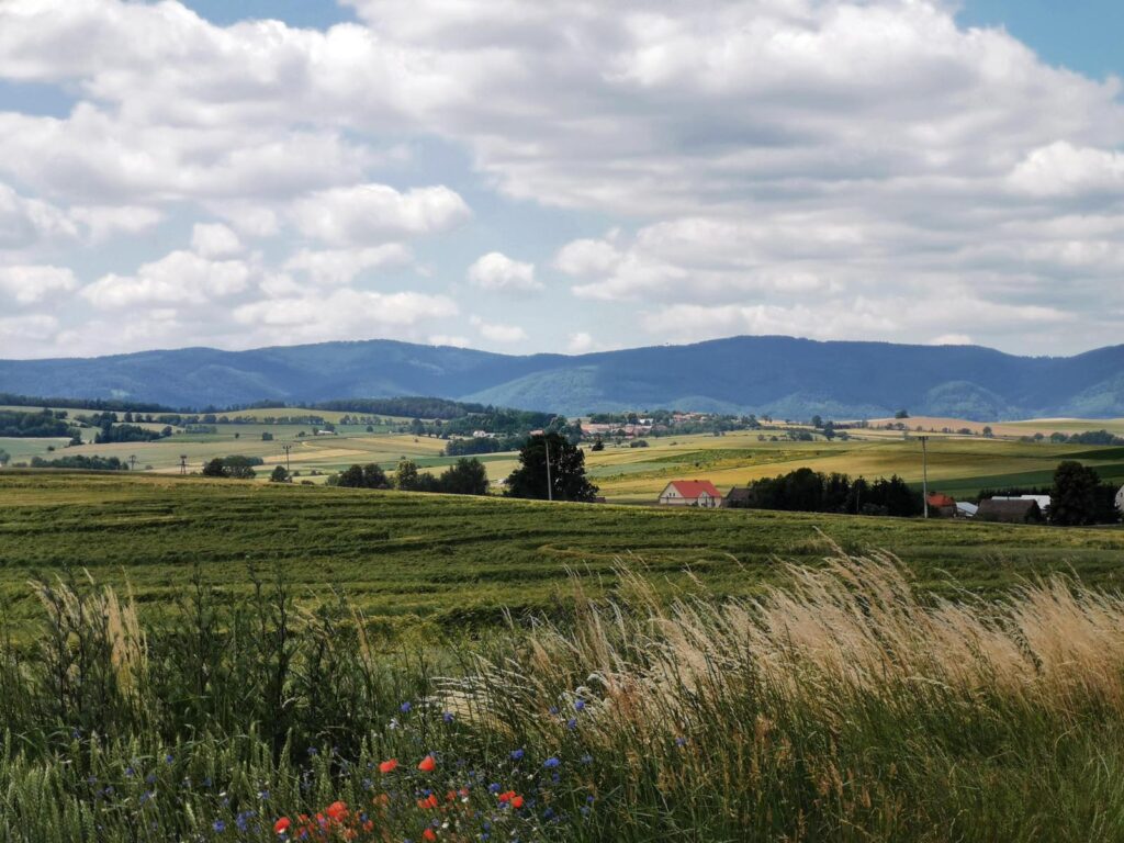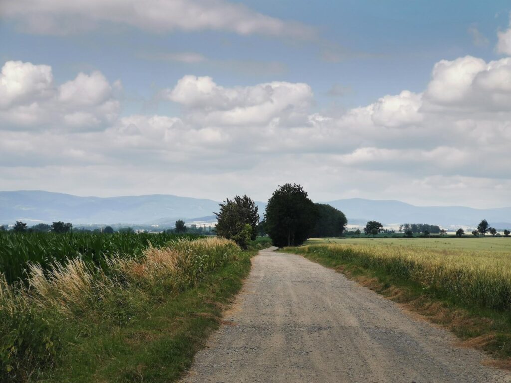 Najefektowniejszy odcinek całej pętli. Na początku przybliżamy się do Gór Sowich, ich grzbiety niezauważalnie ale sukcesywnie „rosną”. Mamy coraz lepszy widok na Twierdzę Srebrnogórską oraz miasto u jej stóp. Teraz skręcamy równolegle do podnóża i drogą rowerową wjeżdżamy w Masyw Brzeźnicy. To mała wysepka co oderwała się od Gór Sowich. Ten fragment zasługuje już na określenie „lekkiego mtb”. Szczególnie, że towarzyszą nam zdecydowanie „górskie” klimaty. Zamknięcie pętli to pokręcone efektownie drogi polne. I cały czas z pięknymi widokami.